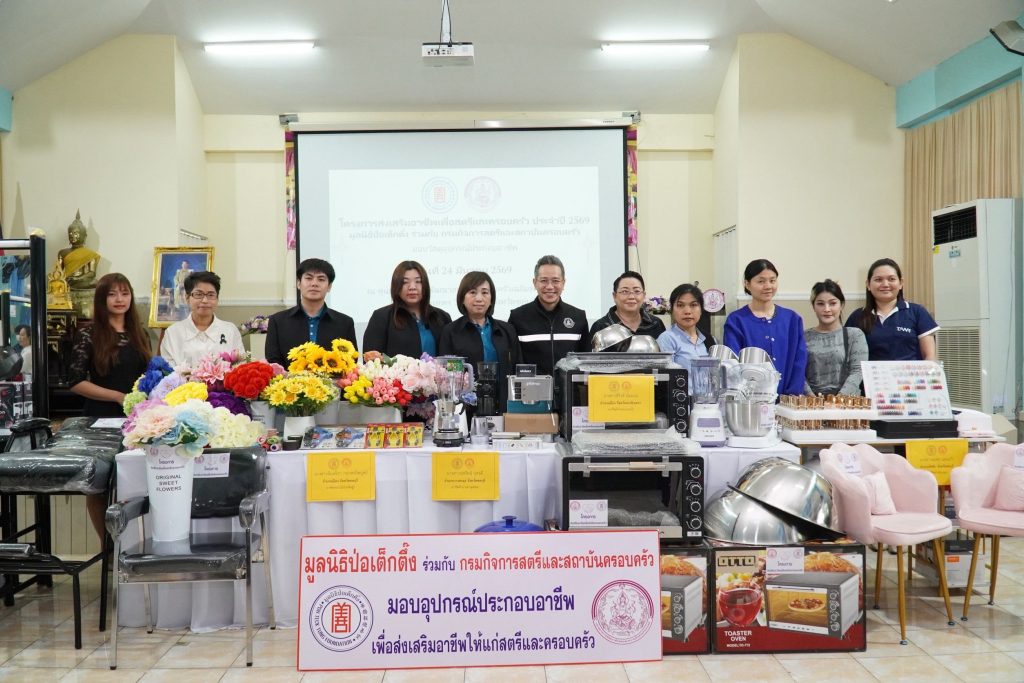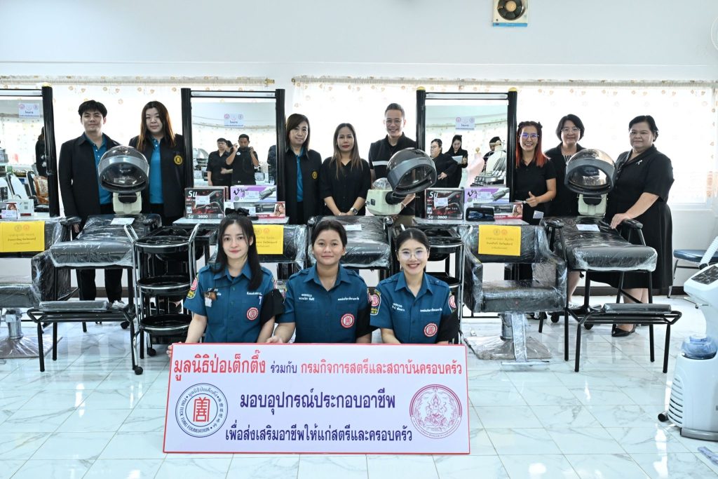 นางศิริพร กระจ่างหล้า ผู้จัดการฝ่ายสังคมสงเคราะห์ เปิดเผยว่า โครงการ ส่งเสริมอาชีพเพื่อสตรีและครอบครัว มูลนิธิป่อเต็กตึ๊ง มีวัตถุประสงค์เพื่อมอบวัสดุอุปกรณ์ประกอบอาชีพ แก่ สตรี บุรุษ พ่อเลี้ยงเดี่ยว ผู้ด้อยโอกาสทางสังคม หรือผู้ที่มีความหลากหลายทางเพศ ที่มีความรู้และความสามารถ ขาดแคลนวัสดุอุปกรณ์ในการประกอบอาชีพ โดยได้รับความร่วมมือจากศูนย์เรียนรู้การพัฒนาสตรีและครอบครัวและสถานคุ้มครองและพัฒนาอาชีพ จำนวน 12 แห่ง ได้แก่ กรุงเทพมหานคร นนทบุรี ชลบุรี สงขลา สุราษฎร์ธานี นครราชสีมา ศรีสะเกษ ขอนแก่น ลำพูน ลำปาง เชียงราย และพิษณุโลก โดยการคัดกรองผู้ที่ผ่านการฝึกอบรม เสริมทักษะอาชีพ ส่งมาให้มูลนิธิฯ พิจารณาตามเกณฑ์ที่กำหนดไว้ โดยมูลนิธิฯ หวังเป็นอย่างยิ่งว่า การดำเนินการโครงการดังกล่าวนี้ จะมีส่วนสนับสนุน ช่วยสร้างอาชีพ สร้างรายได้ เลี้ยงตนเองและครอบครัว ลดปัญหาความเหลื่อมล้ำในสังคม สร้างความสุขสู่ครอบครัว ชุมชน สังคม และประเทศชาติอย่างยั่งยืนต่อไป