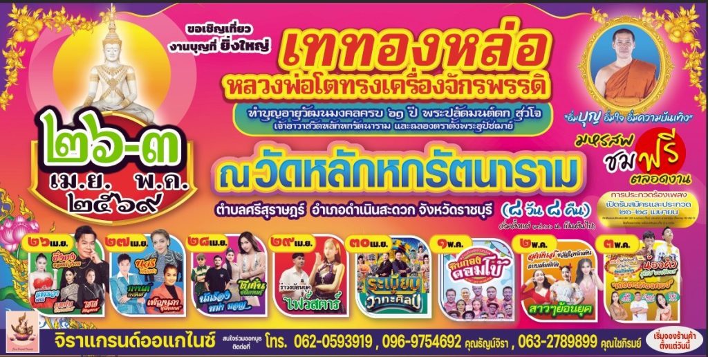 ทั้งนี้ ทางวัดได้กำหนดจัดงานบุญอย่างยิ่งใหญ่ 8 วัน 8 คืน ระหว่างวันที่ 26 เมษายน – 3 พฤษภาคม 2569 ณ วัดหลักหกรัตนาราม เพื่อให้พุทธศาสนิกชนได้ร่วมทำบุญ สร้างกุศล และร่วมสืบสานพระพุทธศาสนา