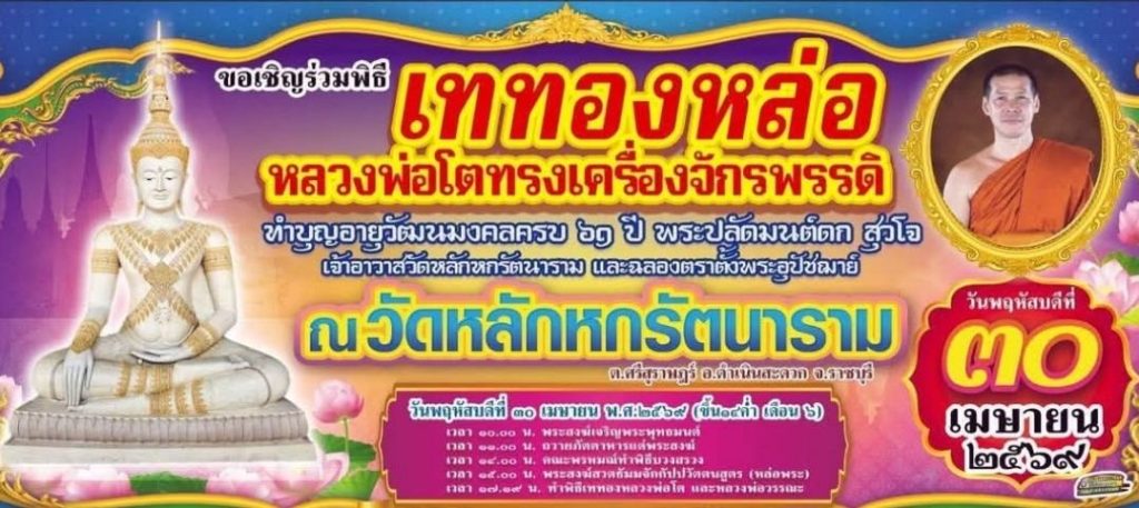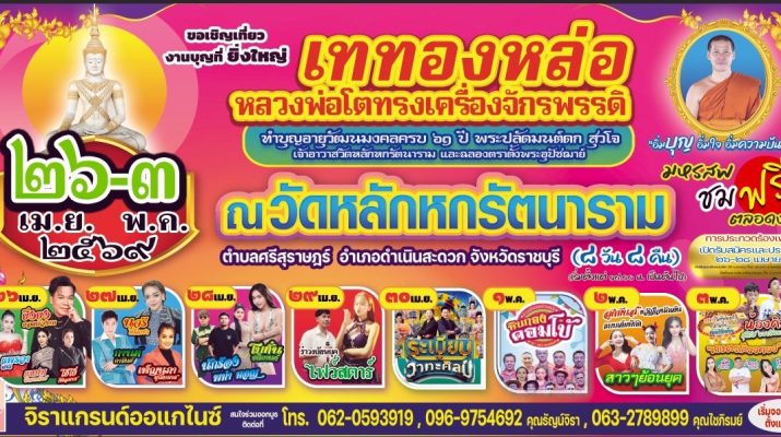 ขอเชิญเที่ยวงานบุญยิ่งใหญ่ เททองหล่อ “หลวงพ่อโตทรงเครื่องจักรพรรดิ์” ณ วัดหลักหกรัตนาราม จ.ราชบุรี