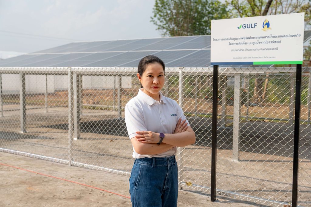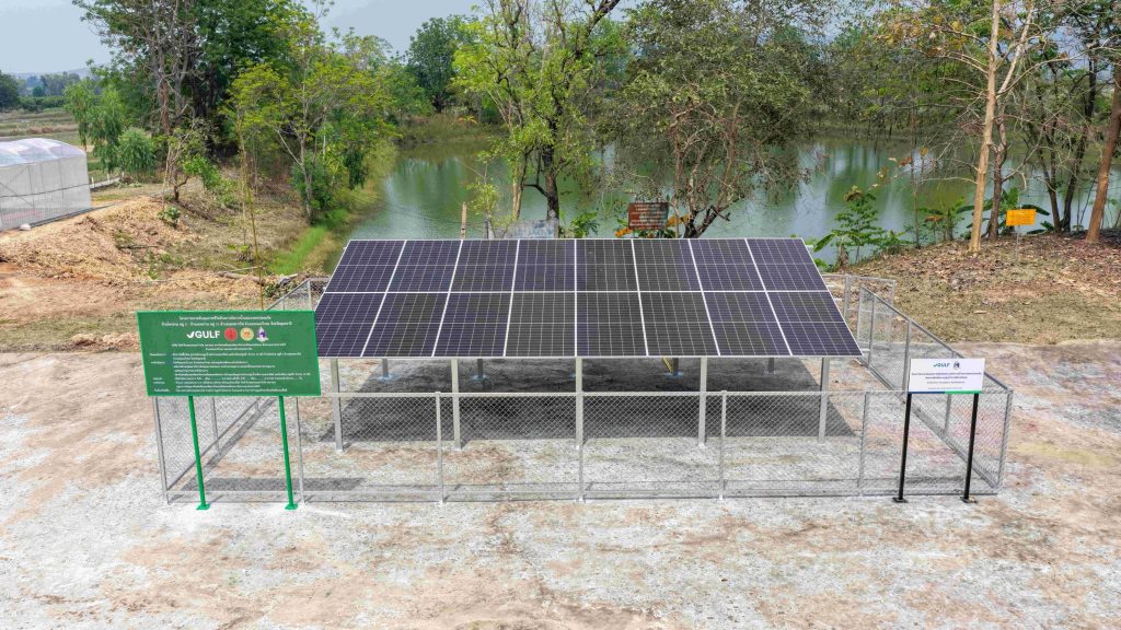 “บริษัท กัลฟ์ ดีเวลลอปเมนท์ จำกัด (มหาชน)” หรือ “GULF” จับมือ “มูลนิธิปิดทองหลังพระ สืบสานแนวพระราชดำริ” และ “สถาบันส่งเสริมและพัฒนากิจกรรมปิดทองหลังพระ สืบสานแนวพระราชดำริ” นำความรู้ความเชี่ยวชาญด้านพลังงานหมุนเวียน มาขยายผลและต่อยอดโครงการยกระดับคุณภาพชีวิตด้วยการจัดการน้ำและเกษตรปลอดภัย บ้านโคกล่ามและบ้านแสงอร่าม ต.กุดหมากไฟ อ.หนองวัวซอ จ.อุดรธานี ด้วยการสนับสนุนการติดตั้งระบบสูบน้ำพลังงานแสงอาทิตย์และหอถังสูง รวมถึงวางระบบท่อส่งน้ำและระบบกระจายน้ำไปยังแปลงเพาะปลูก ขณะเดียวกันยังสนับสนุนโรงเรือนปลูกผักปลอดภัยจำนวน 10 โรงเรือน พร้อมทั้งขยายระบบส่งน้ำไปยังแหล่งน้ำสาธารณประโยชน์ของชุมชนเพื่อให้คนในชุมชนสามารถปลูกผัก ปลูกไม้ผล ไม้เศรษฐกิจ พัฒนาสู่ ‘ป่า 3 อย่าง ประโยชน์ 4 อย่าง’ ลดค่าใช้จ่ายในครัวเรือน สร้างงานสร้างรายได้ที่มั่นคงและยั่งยืนต่อไป