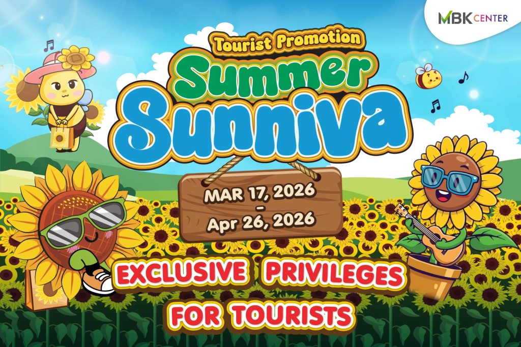 ภายใต้แคมเปญ “Summer Sunniva 2026” จัดขึ้นเพื่อต้อนรับฤดูกาลท่องเที่ยวช่วงซัมเมอร์ พร้อมมอบประสบการณ์ช้อปปิ้งที่คุ้มค่า ผ่านของที่ระลึกสุดเอ็กซ์คลูซีฟเฉพาะที่ เอ็ม บี เค เซ็นเตอร์ เท่านั้น!! ซึ่งสะท้อนสีสันของฤดูร้อนและเสน่ห์วัฒนธรรมไทย เพื่อสร้างความประทับใจให้กับนักท่องเที่ยวต่างชาติ โดยระยะเวลาแคมเปญตั้งแต่วันนี้ – 26 เมษายน 2569 ซึ่งนักท่องเที่ยวสามารถรับคูปองส่วนลดจากร้านค้าที่ร่วมรายการ เพียงแสดงพาสปอร์ตที่เคาน์เตอร์ประชาสัมพันธ์ ชั้น G นอกจากนี้ยังมีของสมนาคุณพิเศษสำหรับทุกการใช้จ่ายตามเงื่อนไข ได้แก่ ช้อปครบ 3,000 บาท รับฟรี MBK Shopping Bag Limited Edition และ ช้อปครบ 4,000 บาท รับฟรี MBK Shopping Bag Limited Edition พร้อมพัดสาน MBK พัดสานไม้ไผ่จากชุมชนบ้านแพรก (MBK Bamboo Fan Limited Edition)