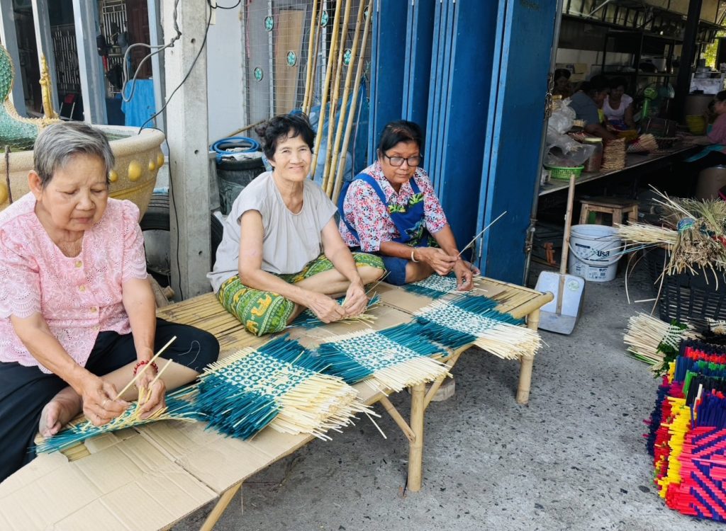 “ความร่วมมือกับศูนย์การค้าเอ็ม บี เค เซ็นเตอร์ ในครั้งนี้ช่วยสร้างงานและรายได้ให้กับคนในชุมชน ตั้งแต่กระบวนการจักตอก ย้อมสี ตัดพัด ดัดโค้ง ใส่ด้าม ไปจนถึงการเย็บบรรจุภัณฑ์ โดยเฉพาะกลุ่มผู้สูงอายุและผู้พิการในชุมชน ทำให้ภูมิปัญญาท้องถิ่นยังคงอยู่และคุณภาพชีวิตของคนในชุมชนดีขึ้น” นายประพันธ์กล่าว