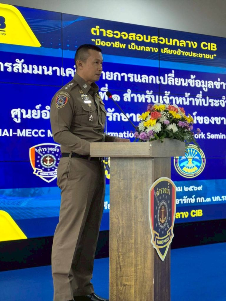 วันที่ 30 มีนาคม 2569 เวลา 09.30 น. พ.ต.อ.ภัทราวุธ จารุจารีต รองผู้บังคับการกองบังคับการตำรวจน้ำ (รอง ผบก.รน.) เป็นประธานในพิธีเปิดการสัมมนาเครือข่ายการแลกเปลี่ยนข้อมูลข่าวสารทางทะเล ครั้งที่ 1 สำหรับเจ้าหน้าที่ประจำศูนย์อำนวยการรักษาผลประโยชน์ของชาติทางทะเล (1st THAI-MECC Maritime Information Exchange Network Seminar: 1st THAI-MECC-IES) ประจำปีงบประมาณ พ.ศ.2569