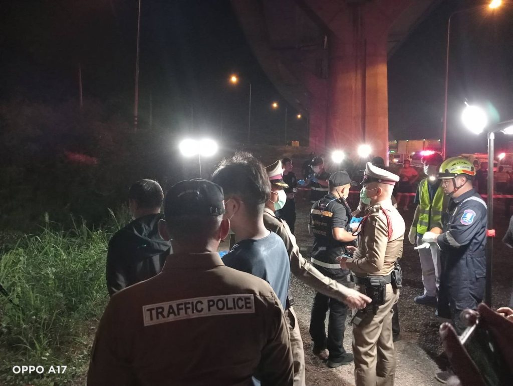 เมื่อเข้าตรวจสอบพบศพ น.ส.ชมพูนุท หัวใจเพชร อายุ 28 ปี สวมเสื้อคลุมสีดำ กางเกงขายาวสีครีม สภาพศพนอนคว่ำหน้าอยู่กับพื้นในป่ากระถิน โดยจุดดังกล่าวเป็นพื้นที่ใต้ทางยกระดับของถนนมอเตอร์เวย์ ความสูงจากจุดบนถนนลงสู่พื้นด้านล่างประมาณ 25 เมตร