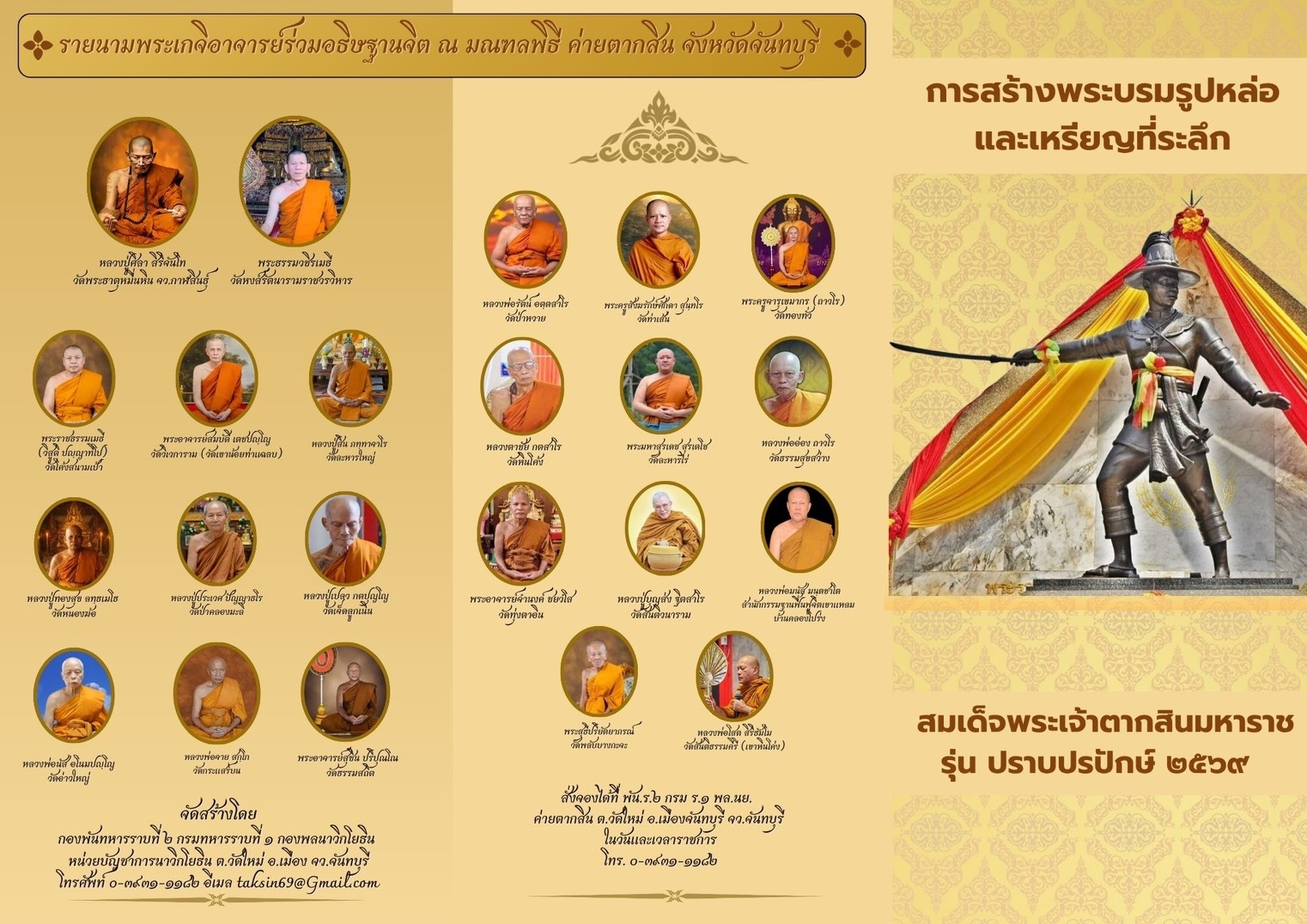 พิธีพุทธาภิเษกยิ่งใหญ่ ในวันพฤหัสบดีที่ 18 มิถุนายน 2569 เวลา 09.09 น. ณ ค่ายตากสิน จ.จันทบุรี