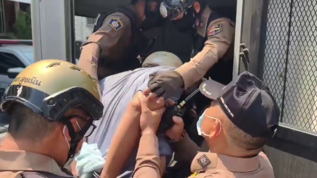 บรรยากาศระหว่างการควบคุมตัวเป็นไปอย่างเคร่งเครียดและกดดัน ภายในโรงพักมีเจ้าหน้าที่ตำรวจดูแลความเรียบร้อยอย่างใกล้ชิด ก่อนที่เจ้าหน้าที่จะนำตัวนายเกื้อกูลออกจากห้องขัง โดยสวมหมวกกันน็อก สวมเสื้อเชิ้ต กางเกงขาสั้น และใส่กุญแจมือไขว้หลัง