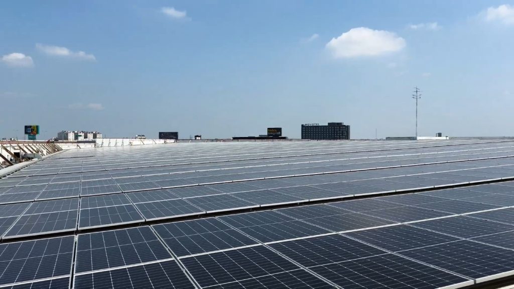 โดยโครงการนี้มีขนาดการติดตั้งกว่า 302.40 kWp บริเวณอาคารใหม่ของศูนย์การค้าฯ “อาคารจอดรถ 1,000 คัน” เพื่อรองรับการใช้พลังงานภายในศูนย์การค้าฯ ช่วยลดภาระค่าไฟฟ้าจำนวนมหาศาลจากการดำเนินงานของร้านค้าและสิ่งอำนวยความสะดวกภายในศูนย์การค้าฯ โดยหลังการติดตั้งระบบโซลาร์ในโครงการดังกล่าว คาดว่าจะช่วยประหยัดค่าไฟฟ้าได้กว่า 1.48 ล้านบาทต่อปี หรือเฉลี่ย ประมาณ 123,000 บาทต่อเดือน โดยมีระยะเวลาคืนทุนเพียง 4 ปี 5 เดือน พร้อมช่วยลดการปล่อยก๊าซคาร์บอนไดออกไซด์กว่า 177 ตันต่อปี ซึ่งเทียบเท่าการปลูกต้นไม้กว่า 17,000 ต้นต่อปี