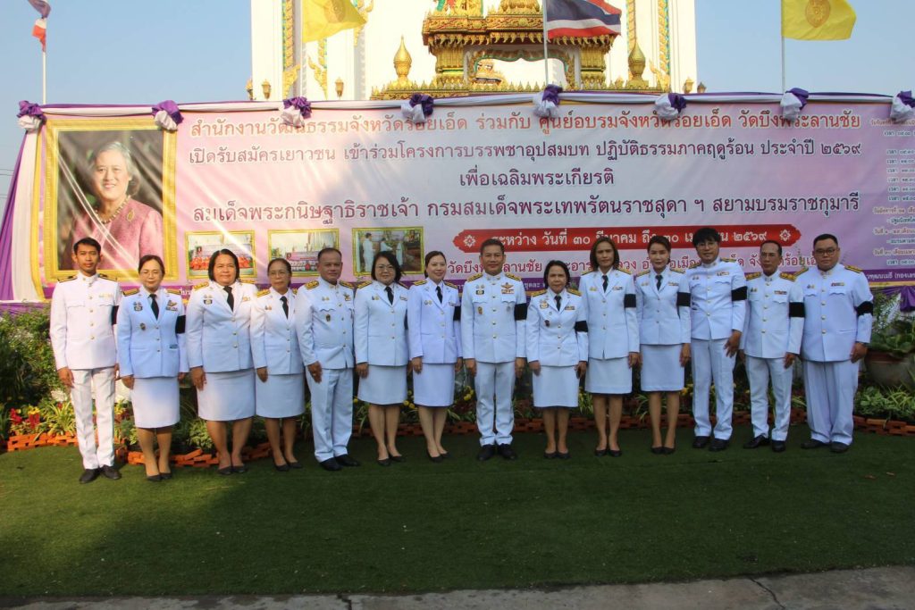 ในการนี้ นายพิชัยยา ตุระซอง และนายนันทวิทย์ นาคแสง รองผู้ว่าราชการจังหวัดร้อยเอ็ด พร้อมด้วยผู้แทนจากหน่วยงานอัยการ ศาล ทหาร ตำรวจ หัวหน้าส่วนราชการ และพุทธศาสนิกชนชาวจังหวัดร้อยเอ็ด เข้าร่วมพิธีโดยพร้อมเพรียง เพื่อแสดงออกถึงความจงรักภักดี และน้อมสำนึกในพระมหากรุณาธิคุณ