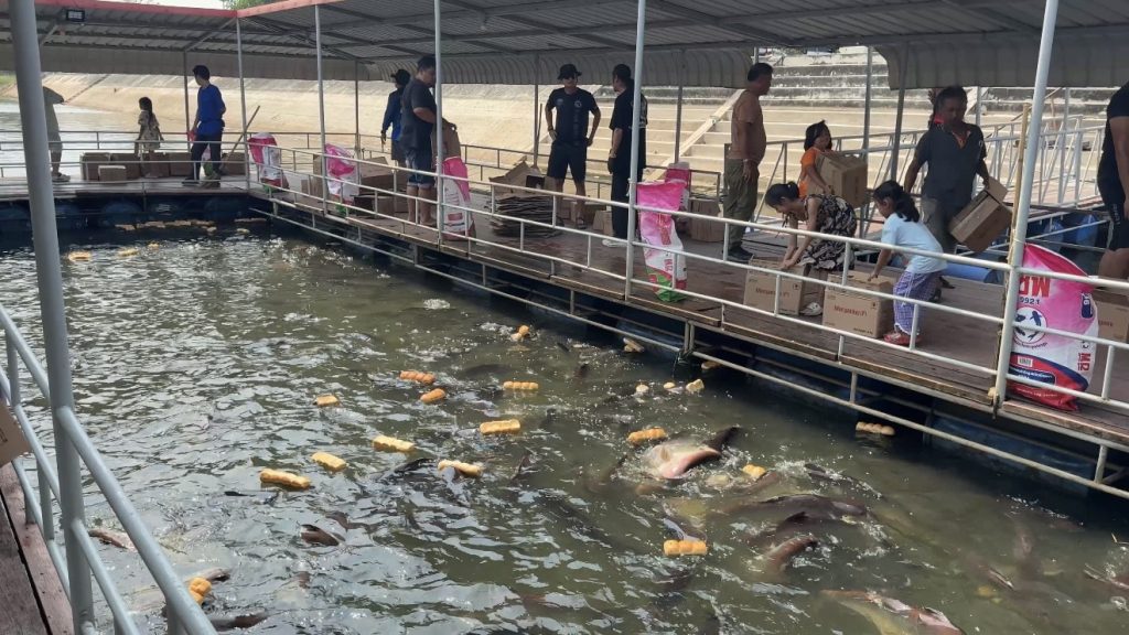 แต่ที่มาวันนี้ มาเพื่อแก้บน หลวงพ่อบัวเข็ม พระพุทธรูปที่ตั้งศาลาริมน้ำ วัดโตนดเตี้ย แห่งนี้ มานานกว่า 10 ปี หลังจากที่เข้ามาช่วยเหลือทางวัด ก็ได้ขอหลวงพ่อบัวเข็มให้ตนเองถูกรางวัล ถ้าถูกก็จะซื้อขนมปังมาเลี้ยงปลา เลี้ยงสัตว์ในวัด มาครั้งนี้งวด วันที่ 1 เมษายน 2569 ที่ผ่านมา ถูกรางวัล เลขท้าย 2 ตัว เลข 47 ถึง 211 ใบ ได้มา 4 แสนกว่าบาท จึงจัดซื้อขนมปัง มาแก้บนตามที่ขอไว้