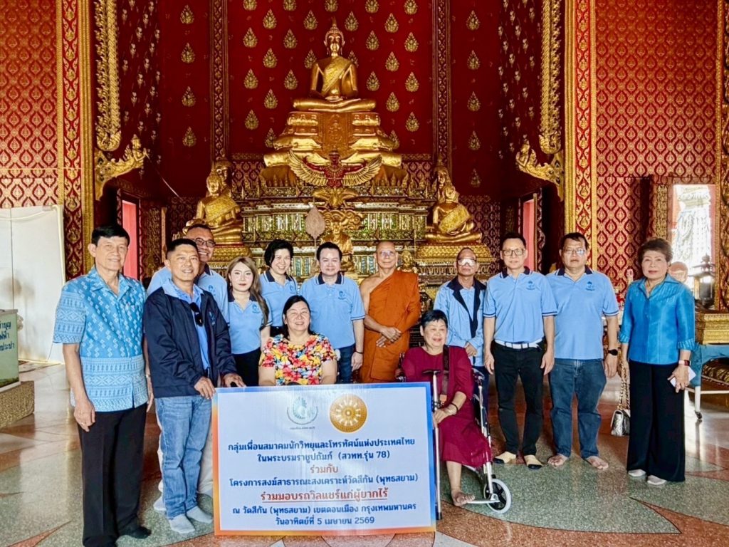 กลุ่มเพื่อนสมาคมนักวิทยุและโทรทัศน์แห่งประเทศไทย ในพระบรมราชูปถัมภ์(สวทท. รุ่น 78) ร่วมกับ โครงการสงฆ์สาธารณะสงเคราะห์ วัดสีกัน(พุทธสยาม) และ อสส.กทม. เขตดอนเมือง ร่วมมอบวิลแชร์แก่ผู้ยากไร้