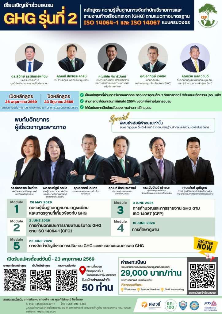 รายละเอียดเพิ่มเติม : https://cep.or.th/ghg2/