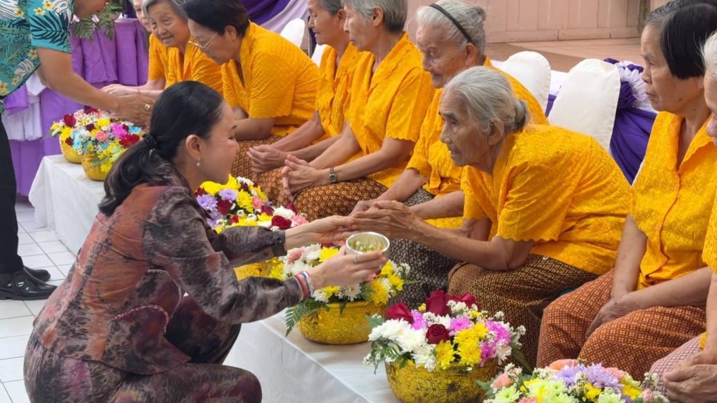 นครราชสีมา – เมื่อวันที่ 9 เมษายน 2569 ที่ สถานสงเคราะห์คนชราบ้านธรรมปกรณ์วัดม่วง ตำบลในเมือง อำเภอเมือง จังหวัดนครราชสีมา นางยลดา หวังศุภกิจโกศล นายกองค์การบริหารส่วนจังหวัดนครราชสีมา เป็นประธานเปิดโครงการจัดงานประเพณี วันผู้สูงอายุแห่งชาติ ประจำปีงบประมาณ 2569 โดยมีการจัดพิธีรดน้ำดำหัวขอพรผู้สูงอายุ จำนวน 61 คน ท่ามกลางบรรยากาศอบอุ่นและเต็มไปด้วยรอยยิ้ม