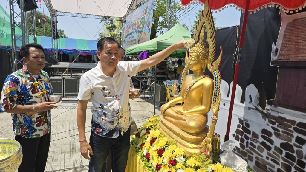 นอกจากนี้ ยังมีการประกอบพิธีทางศาสนา โดยจัดพิธีสงฆ์ รดน้ำดำหัวพระสงฆ์ และรดน้ำขอพรผู้สูงอายุ เพื่อความเป็นสิริมงคลเนื่องในโอกาสวันขึ้นปีใหม่ไทย ซึ่งถือเป็นช่วงเวลาสำคัญที่ประชาชนได้กลับมาพบปะญาติพี่น้อง และสานความสัมพันธ์อันดีภายในครอบครัวและชุมชน