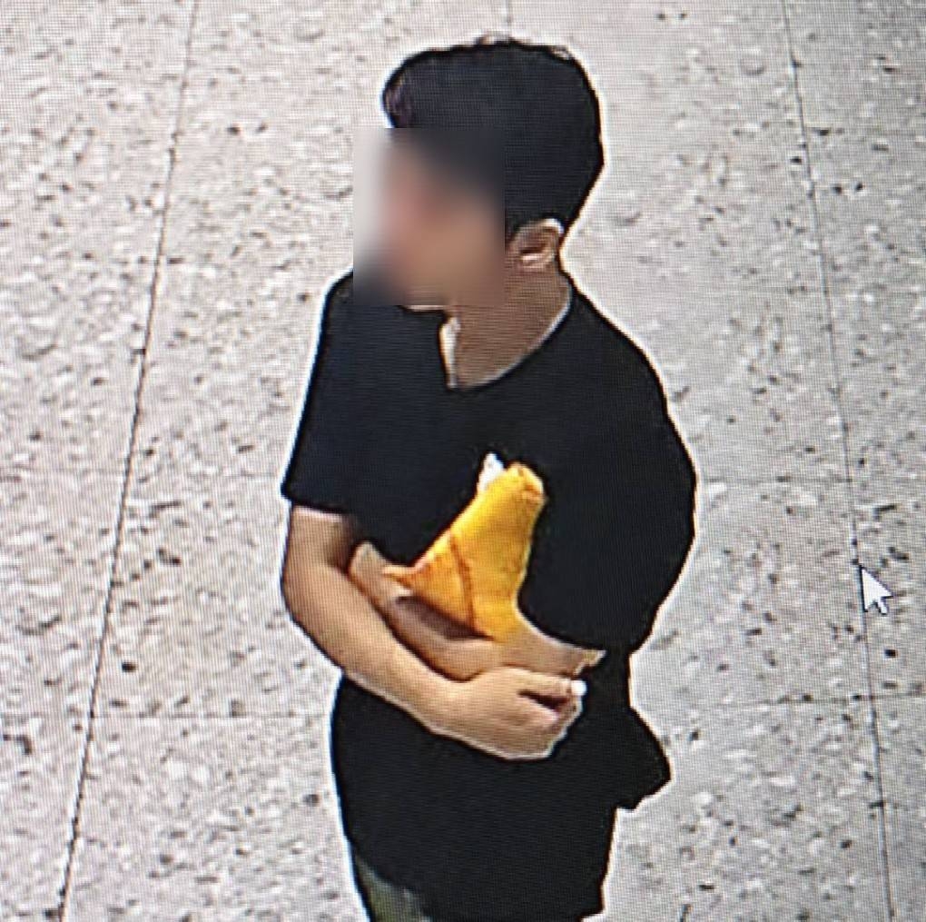 จากการตรวจสอบภาพจากกล้องวงจรปิด พบคนร้ายแต่งกายสวมเสื้อแขนสั้นสีดำ กางเกงขายาวสีเขียวขี้ม้า ถือถุงพลาสติกสีเหลือง ก่อนหลบหนีขึ้นรถยนต์ยี่ห้อ MG สีดำ หมายเลขทะเบียน 9กง 6258 กรุงเทพมหานคร แล้วขับออกจากพื้นที่