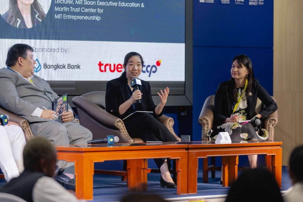 การส่งต่อองค์ความรู้เพื่อสร้างความเป็นผู้ประกอบการในกลุ่มคนรุ่นใหม่ เป็นเรื่องที่ทุกภาคส่วนสามารถร่วมกันสนับสนุนได้ โดย ดร.ชนนิกานต์ ได้แบ่งปันข้อคิดด้านการศึกษาในการบ่มเพาะคนรุ่นใหม่ เน้น 2 สิ่งที่สำคัญ คือ 1) ภาคการศึกษาควรมุ่งเน้นปรับปรุงเนื้อหาและเครื่องมือการเรียนการสอนให้มีความทันสมัยอยู่เสมอตามการพัฒนาของเทคโนโลยี ยกตัวอย่างกรณีของผู้ประกอบการที่ลงทุนทำธุรกิจเองคนเดียว จะใช้ AI อย่างไรในการวิเคราะห์กลุ่มตลาด การวิจัยตลาด หรือการนำ AI มาช่วยในงานเชิงกลยุทธ์ ขณะเดียวกันต้องมั่นใจได้ว่ายังคงมีเนื้อหาความรู้พื้นฐานที่จำเป็น เช่น การคิดเชิงตรรกะและการแก้ไขปัญหา 2) การทลายกำแพงการศึกษาแบบแยกส่วน โดยบูรณาการเชื่อมโยงการเรียนรู้เข้ากับความต้องการและปัญหาจริงของภาคธุรกิจ เช่น โมเดลความร่วมมือระหว่างทรูกับมหาวิทยาลัยต่างๆ ผ่าน TrueLAB เพื่อเสริมสร้างระบบนิเวศด้านนวัตกรรม การเรียนรู้ร่วมกัน และโอกาสการเข้าทำงานของนักศึกษา พร้อมส่งเสริมการเรียนรู้ผ่าน Action Learning เช่น การจัด Hackathons และ Open Innovation Runway เพื่อให้ทั้งนักศึกษาและบุคลากรในองค์กรได้ลงมือแก้ปัญหาจริงของภาคอุตสาหกรรม พร้อมพัฒนานวัตกรรมเป็นโมเดลเชิงพาณิชย์ร่วมกับบริษัทต่างๆ ซึ่งจะช่วยให้การศึกษาด้านความเป็นผู้ประกอบการอยู่บนพื้นฐานของความเป็นจริง และสามารถสร้างผลกระทบเชิงบวกต่อสังคมได้อย่างแท้จริง”