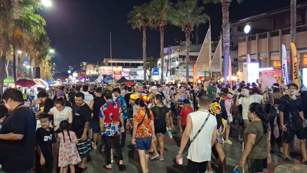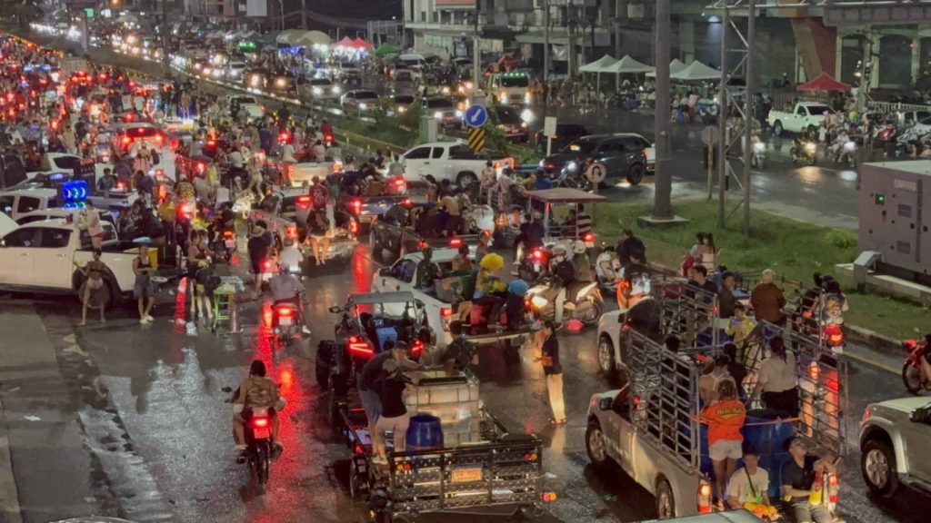 ยิ่งดึกยิ่งเดือด! วันไหลพัทยา รถน้ำบุกถนน สุขุมวิทแน่นทุกเลน ส่วนชายหาดก็แน่นไปด้วย นทท.ที่เดินทางมาเล่นน้ำ