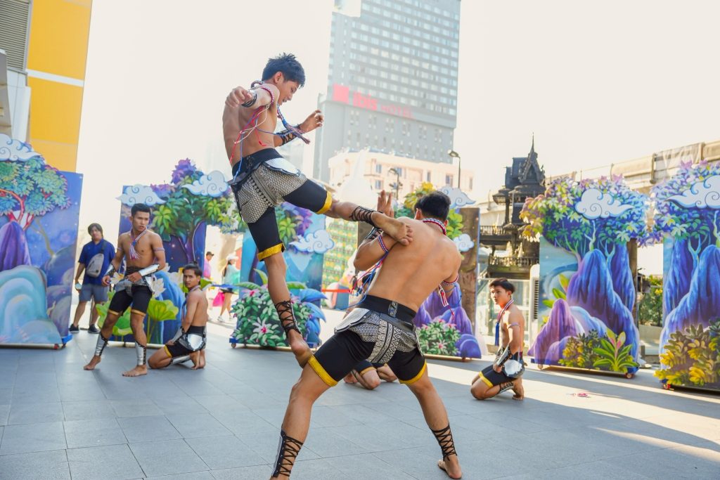ตลอดช่วงเทศกาลสงกรานต์ที่ผ่านมา บริเวณลาน SkyWalk ด้านหน้าเอ็ม บี เค เซ็นเตอร์ จึงกลายเป็นพื้นที่รวมเสน่ห์ความเป็นไทยไว้อย่างครบครัน โดยเฉพาะการแสดงศิลปวัฒนธรรมไทยที่หาชมได้ยาก ซึ่งทั้งลูกค้าคนไทยและนักท่องเที่ยวต่างชาติให้ความสนใจร่วมชมอย่างคึกคัก พร้อมเก็บภาพความประทับใจกับนักแสดงอย่างใกล้ชิด