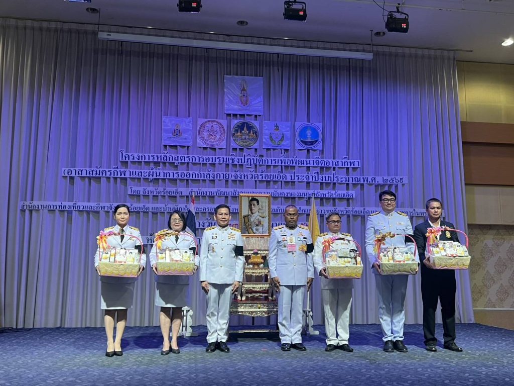 ร้อยเอ็ด พิธีมอบวุฒิบัตร และพิธีปิดโครงการหลักสูตรการอบรมเชิงปฏิบัติการเพื่อพัฒนาจิตอาสากีฬา (อาสาสมัครกีฬาและผู้นำออกกำลังกาย) จังหวัดร้อยเอ็ด ประจำปีงบประมาณ พ.ศ. 2569