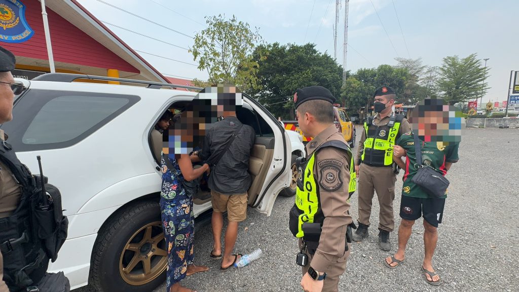 โดยเจ้าหน้าที่ตำรวจทางหลวงอยุธยา พบรถต้องสงสัย ทั้ง 2 คัน คันที่ 1 รถยนต์เก๋ง โตโยต้า อัลติส สีดำ หมายเลขทะเบียน ขก 5766 นครปฐม ใช้เส้นทาง ถนนสายเอเซีย ช่วงหลักกิโลเมตรที่เมตรที่ 17 ตำบลคลองสวนพลู อำเภอพระนครศรีอยุธยา จังหวัดพระนครศรีอยุธยา มีลักษณะบรรทุกน้ำหนักมากผิดปกติ และติดฟิล์มมืดทึบ จึงเรียกตรวจสอบ มีนาย ซิน โบ แฮก อายุ 34 ปี สัญชาติเมียนมา เป็นคนขับ พร้อมแรงงานรวมมาในรถอัดแน่น 7 คนรวมคนขับ ผู้หญิง 5 คนผู้ชาย 2 คน