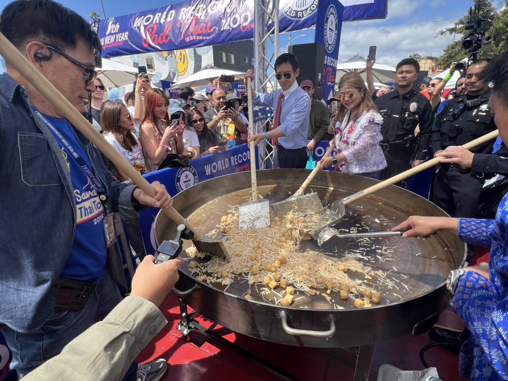 ในเวลา 11.00 น. เริ่มกิจกรรมไฮไลท์ของงาน คือ การทำสถิติโลกขายผัดไทย อาหารที่ได้รับความนิยมระดับโลก จำนวน 1,200 กล่อง ภายในเวลา 1 ชั่วโมง โดยเชิญทีมงานกินเนสเวิลด์ มาบันทึกการทำสถิติโลก มีคุณหญิงสุดารัตน์ เกยุราพันธ์ อดีต รมว.สาธารณสุข, นายสมใจนึก เองตระกูล อดีตปลัดกระทรวงการคลัง, นายพิธา ลิ้มเจริญรัตน์ อดีตหัวหน้าพรรคก้าวไกล, นายต่อ ศรลัมพ์ กงสุลใหญ่ฯ, นายนภดล วงศ์ชัยวัฒน์ ประธานเจ้าหน้าที่บริหารไทยนิวเยียร์ฯ พร้อมทั้งนักการเมืองอเมริกัน และบุคคลจากวงการต่างๆ รวมทั้งผู้ไปร่วมงานได้เข้าร่วมทำสถิติโลกครั้งนี้ด้วย โดยเชฟจาก 48 ร้านดัง มาร่วมทำผัดไทยขาย