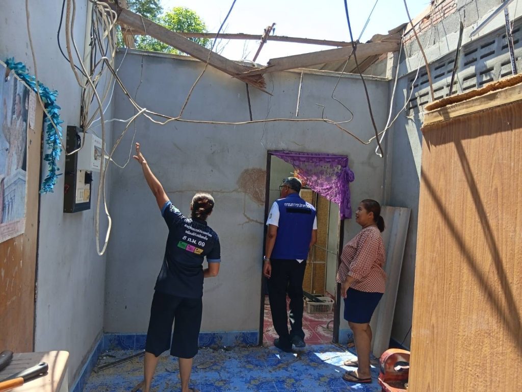 นายอำเภอบ้านนาเดิมเร่งตรวจสอบความเสียหายบ้านเรือนประชาชนที่ได้รับความเสียหายจากเหตุวาตภัย
