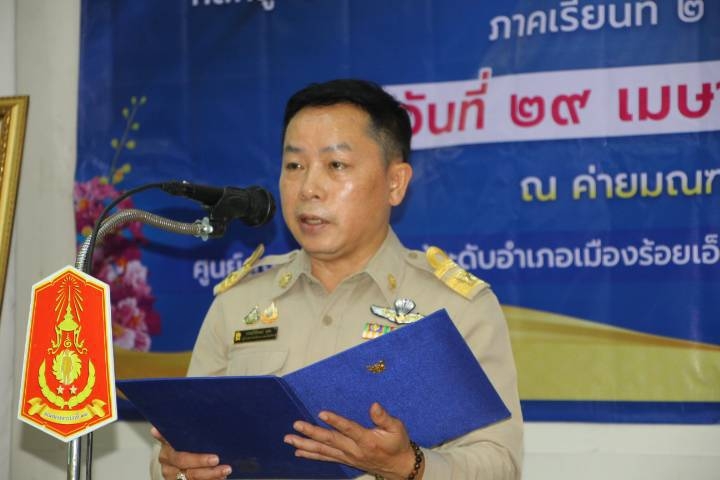 นางพิศมัย ชมภูบุตร ผู้อำนวยการศูนย์ส่งเสริมการเรียนรู้ระดับอำเภอเมืองร้อยเอ็ด กล่าวรายงานว่า ศูนย์ส่งเสริมการเรียนรู้ระดับอำเภอเมืองร้อยเอ็ด ได้ดำเนินการจัดการศึกษาตามหลักสูตรการศึกษานอกระบบระดับการศึกษาขั้นพื้นฐาน พุทธศักราช 2551 ให้แก่ทหารกองประจำการ เพื่อเปิดโอกาสให้กำลังพลได้พัฒนาตนเองด้านการศึกษา ควบคู่กับการปฏิบัติหน้าที่รับใช้ชาติ อันเป็นการส่งเสริมความรู้ ความสามารถ และยกระดับคุณวุฒิทางการศึกษา